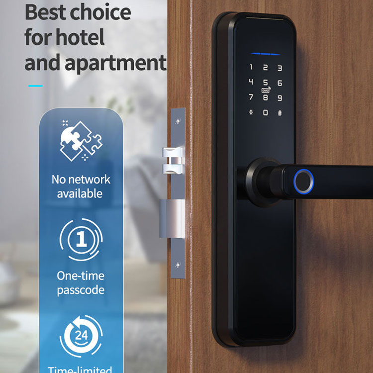 1. Tilgang via app/fingeravtrykk/kode/kort/mekanisk tast.2. Høy følsomhet for berøringsskjerm digitalt brett.3. Kompatibel med TT Lock eller Tuya -appen.
