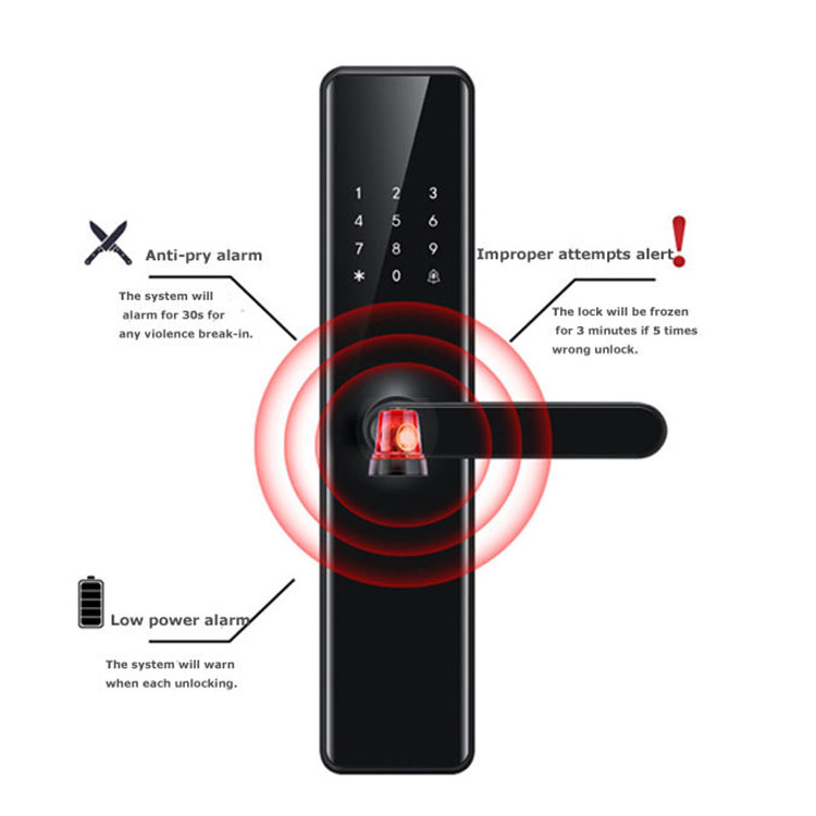 Hvis noen skriver inn feil kode/fingeravtrykk/kort 5 ganger, vil denne smarte låsen automatisk bli frosset i 3 minutter.